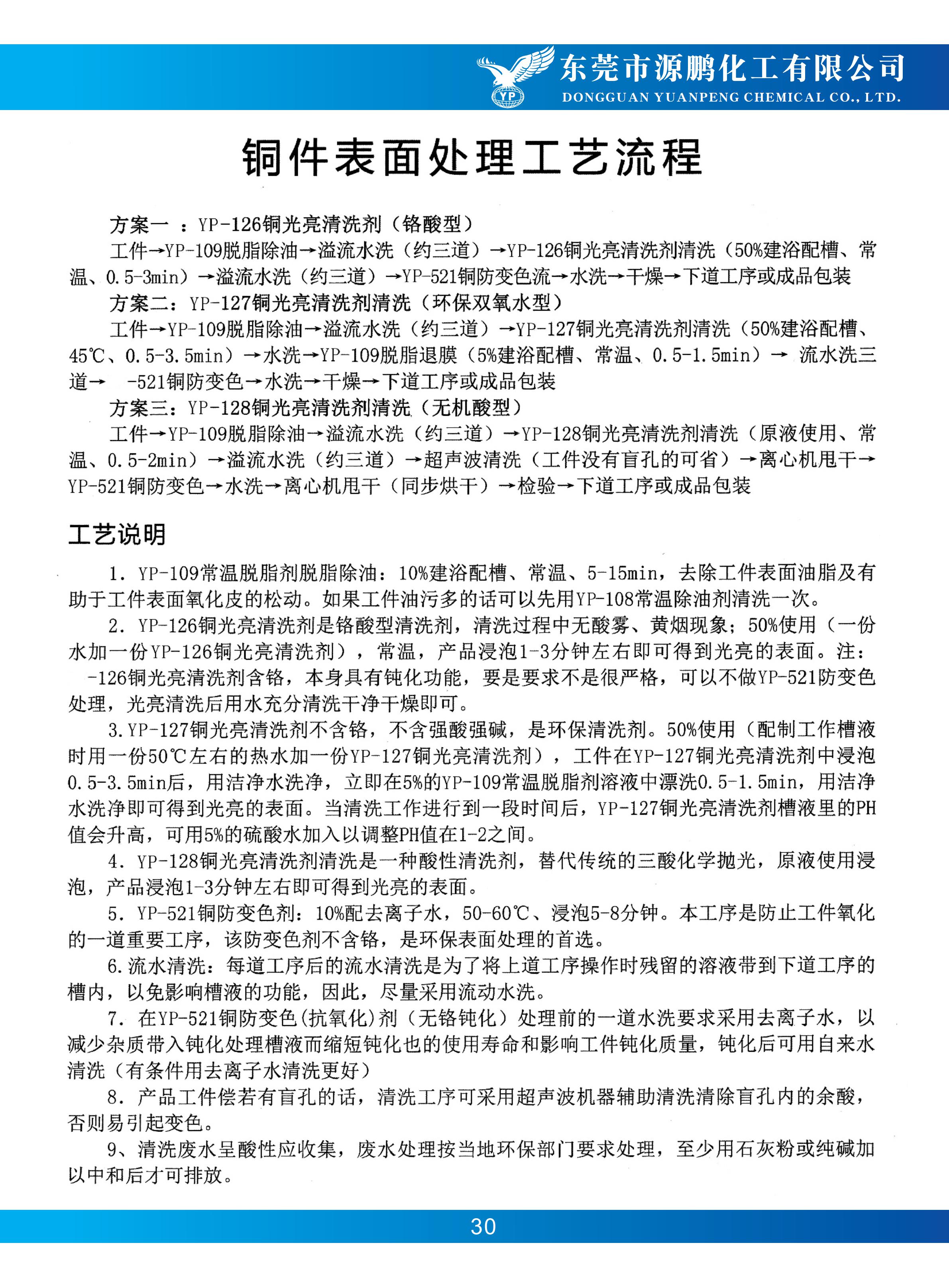 铜件表面处理工艺流程